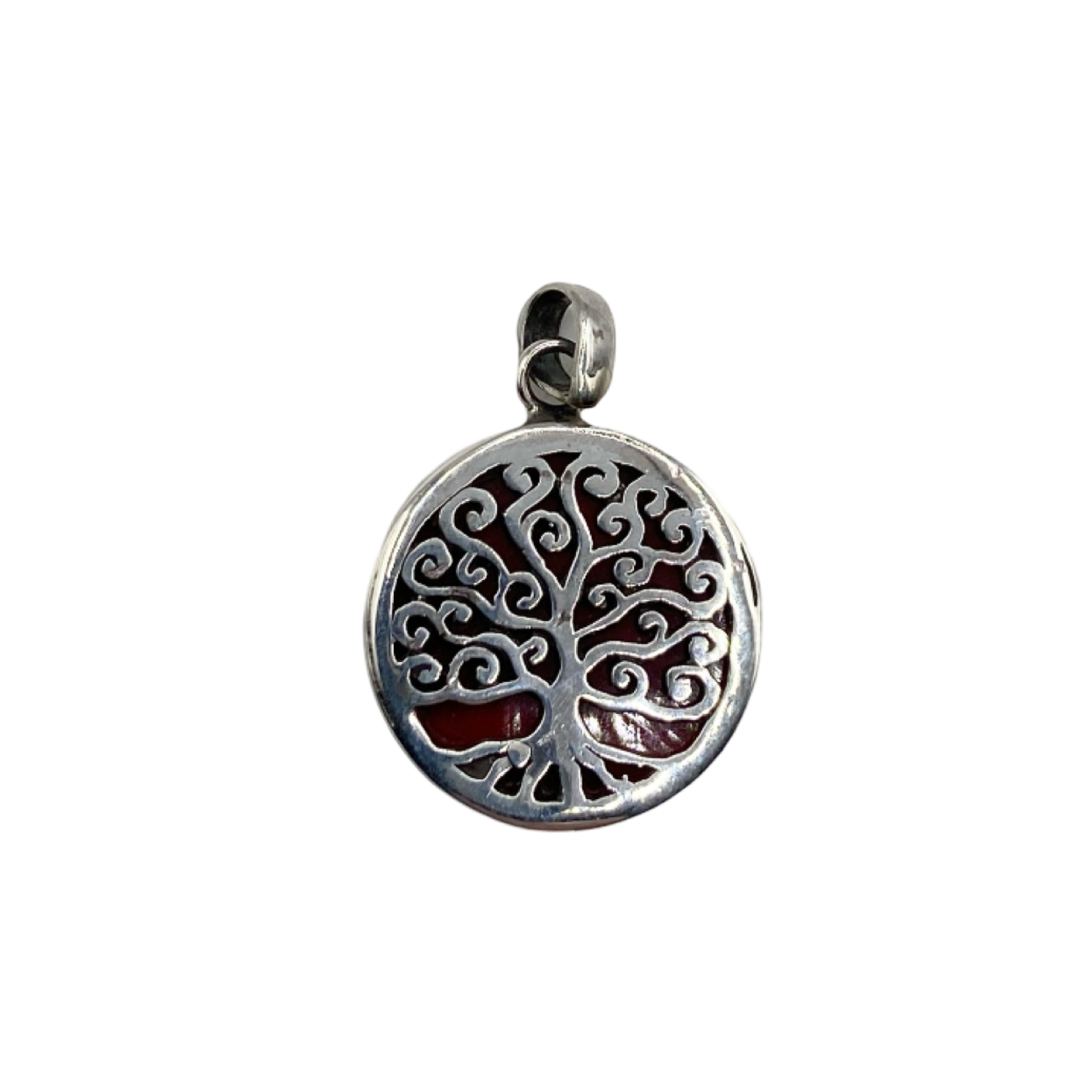 Reversible Red Coral Tree of Life Pendant in Sterling Silver