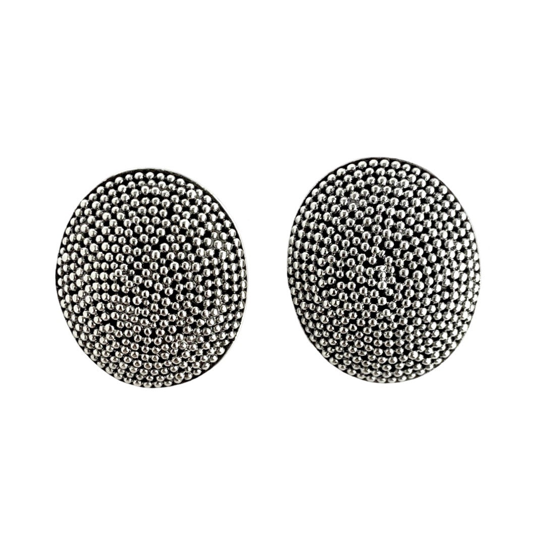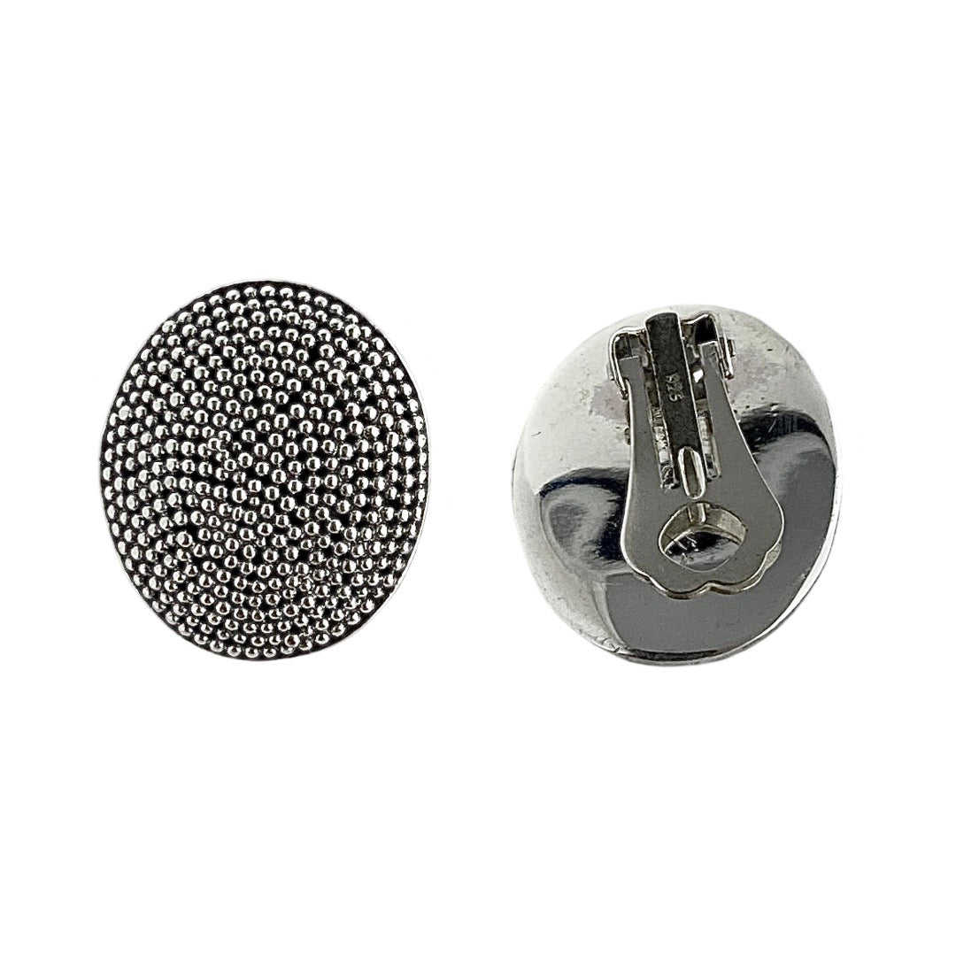 Sterling Silver Round Clip-On Earrings with Tiny Oxidized Dots