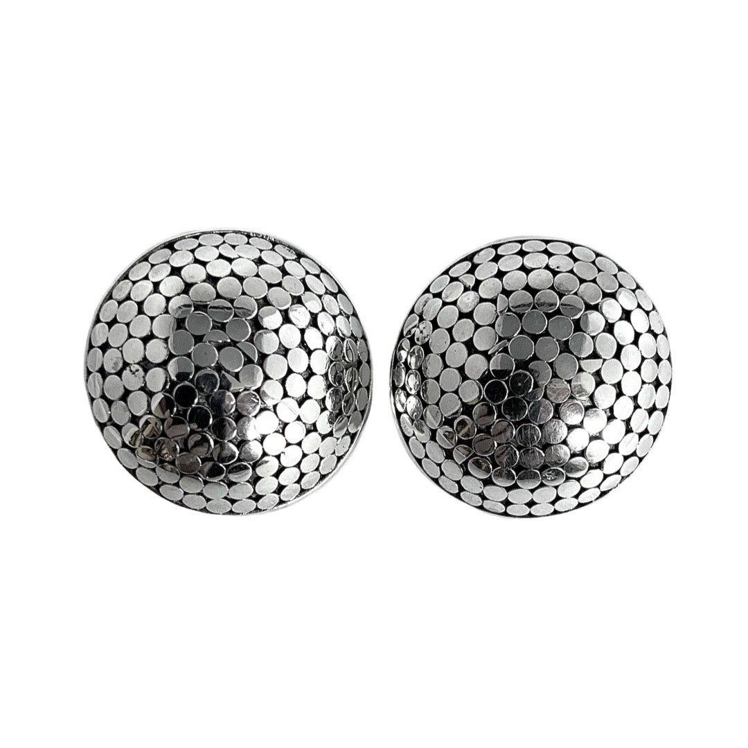 These elegant silver dome clip-on earrings feature a unique textured pattern of polished circle facets that reflect light with a... Read more
