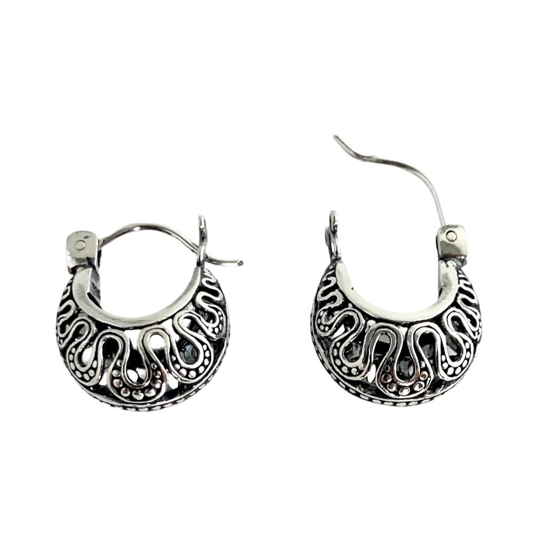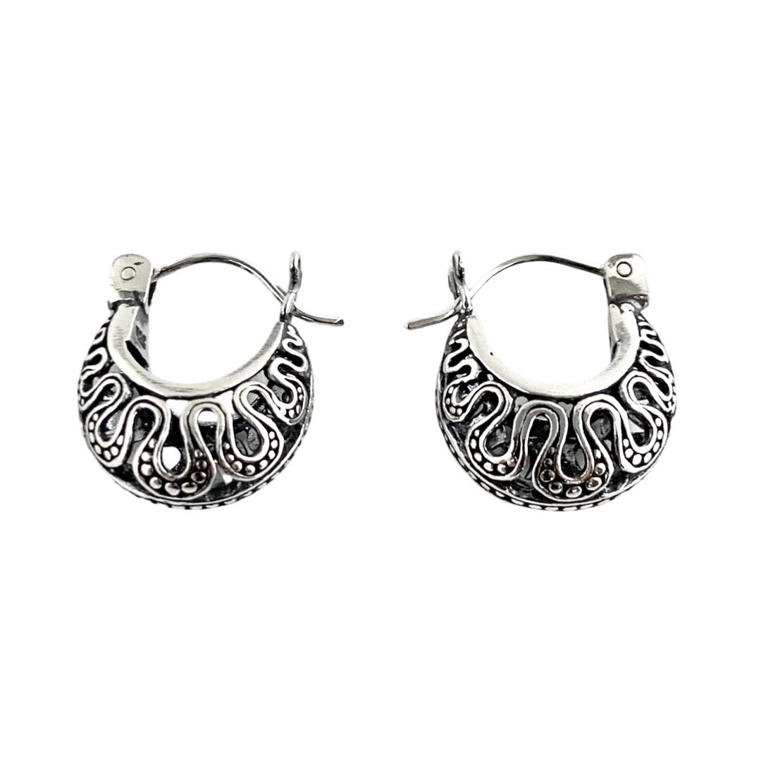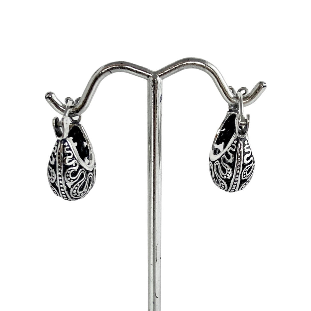 Sterling silver hoop earrings. Product form Sterling silver earrings. About 2 cm x 1.5 cm Read more SKU: ES495 $19.00 Quantity Add to cart This item is a recurring or deferred purchase. By continuing, I agree to the cancellation policy and authorize you to charge my payment method at the prices, frequency and dates listed on this page until my order is fulfilled or I cancel, if permitted.