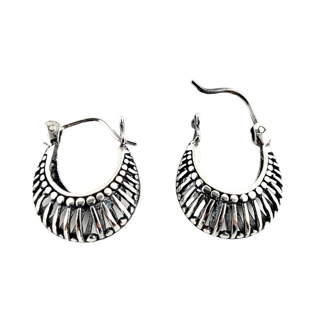 Sterling Silver hoops earrings. Product form Sterling silver hoop earrings. About 2 cm x 1.7 cm Read more SKU: ES488 $18.00 Quantity Add to cart This item is a recurring or deferred purchase. By continuing, I agree to the cancellation policy and authorize you to charge my payment method at the prices, frequency and dates listed on this page until my order is fulfilled or I cancel, if permitted.