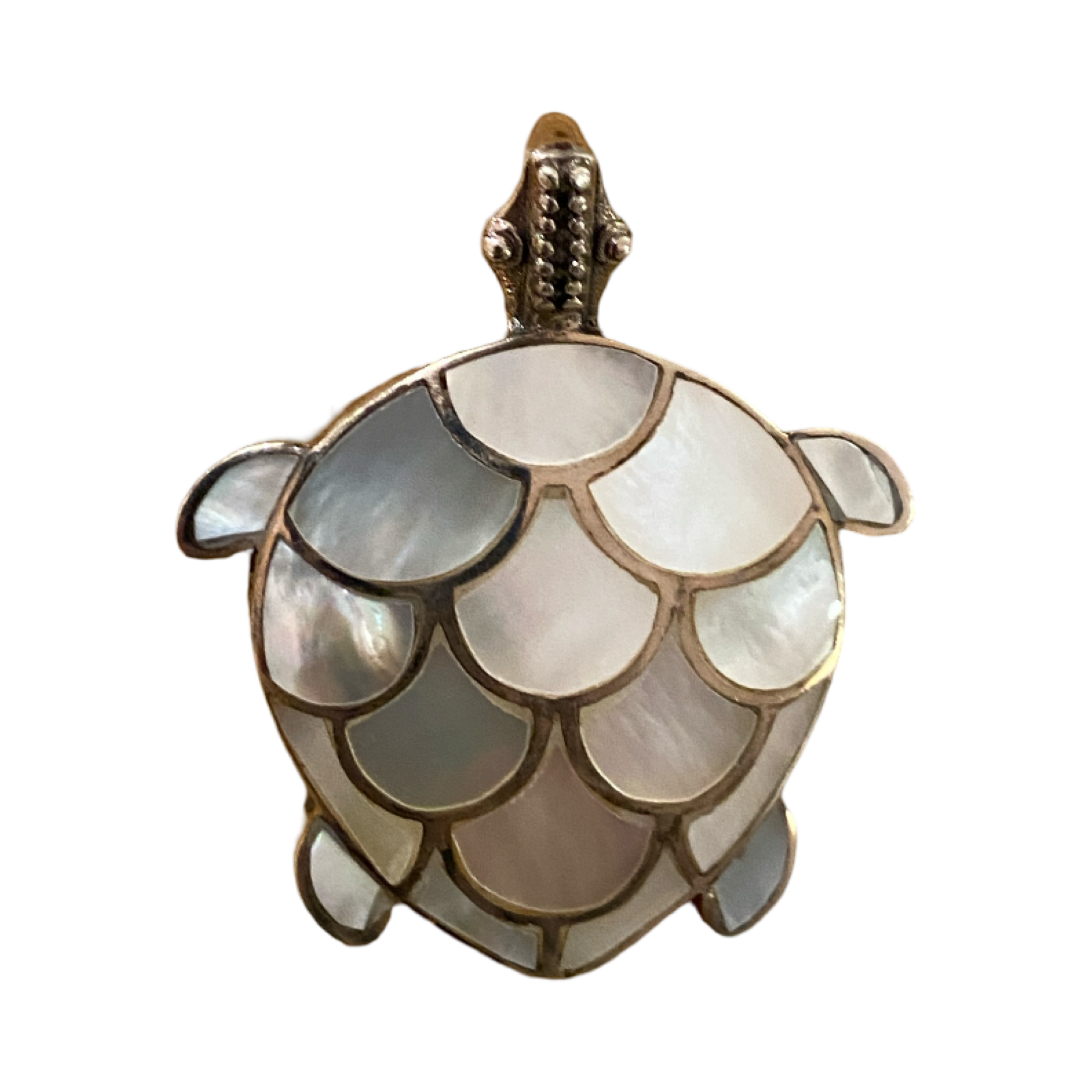 Mother of Pearl Turtle Sterling Silver Pin & Pendant